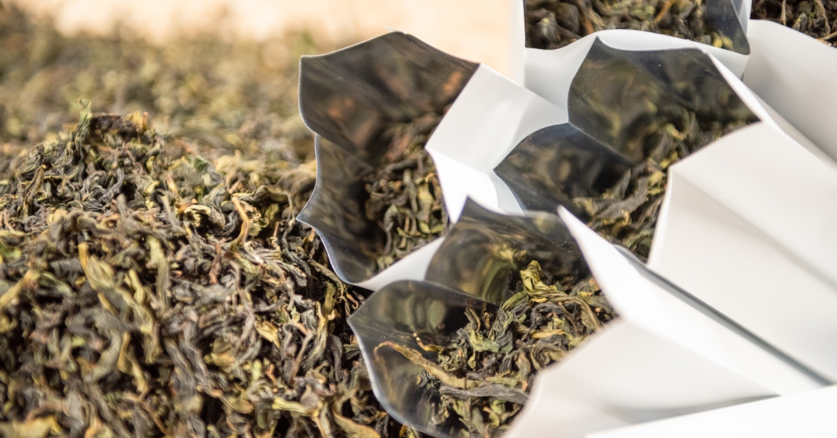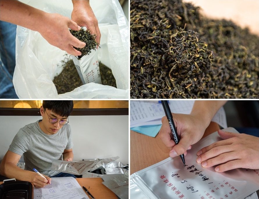 將每一位農友的茶葉分裝入袋,並整形抽真空成袋裝。