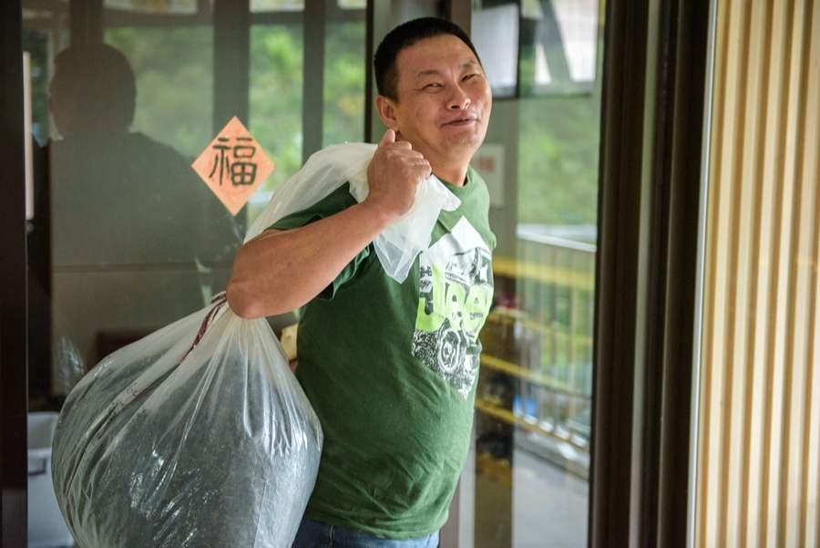 接收農友繳來的茶葉後,工作人員必須展開茶葉秤重、分裝以及農藥檢測等步驟。